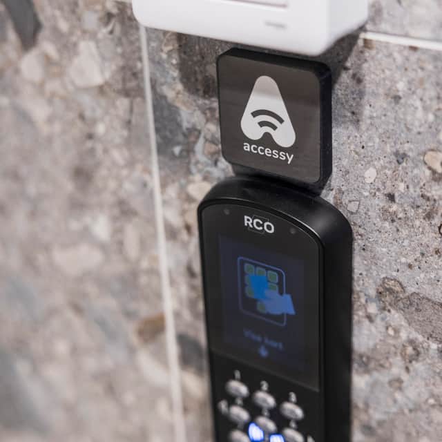 Accessy är en tjänst som gör det möjligt för dig att öppna era dörrar med mobilen, att enkelt hantera behörigheter digitalt och öppna för andra på distans. Smidigt, effektivt och säkert.