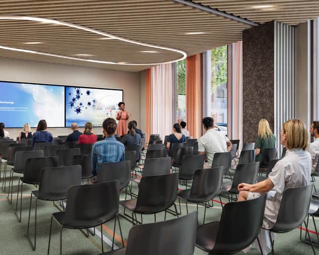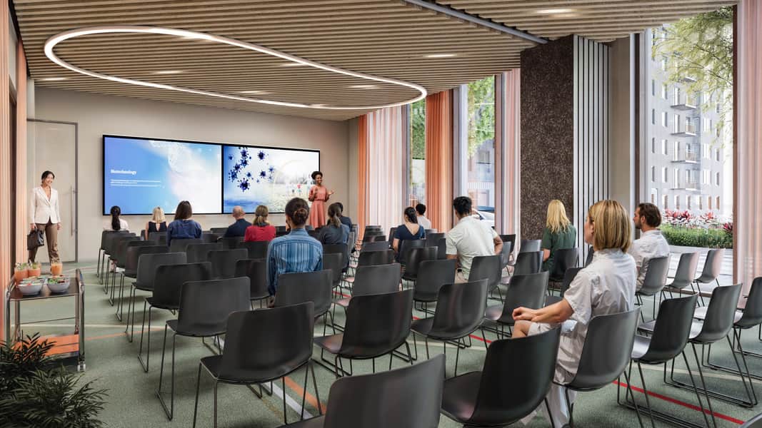 Förutom lounge och konferensrum finns café och reception som är gemensamma för alla i huset. Men dörrarna står även öppna för dina gäster och andra som vill ha ett avslappnat ställe att mötas, arbeta, fika, luncha, tänka, planera och diskutera på. Beräknad inflyttning är 2027, men redan nu kan du vara med och forma er nya arbetsmiljö.