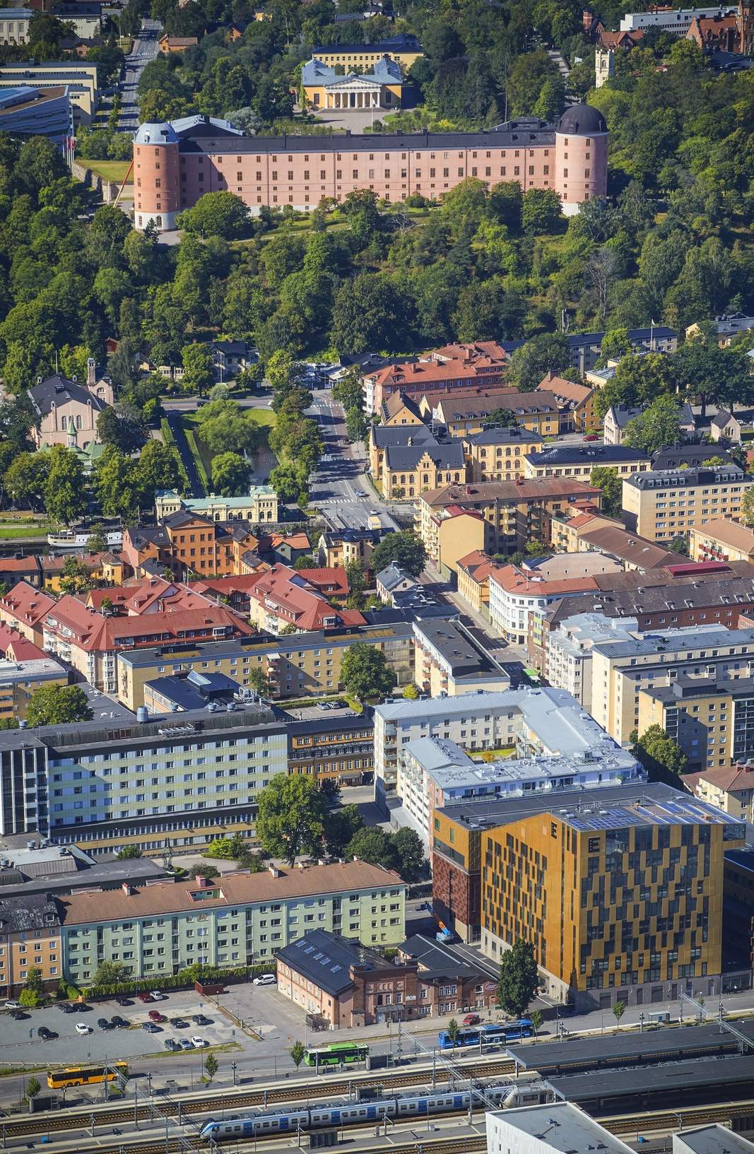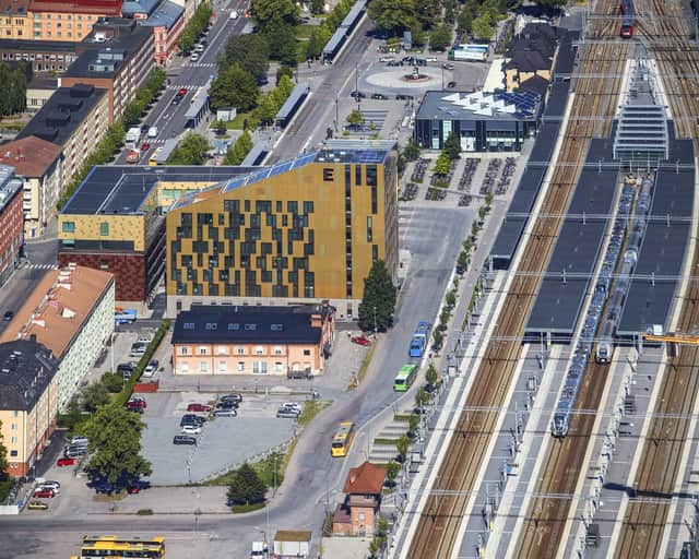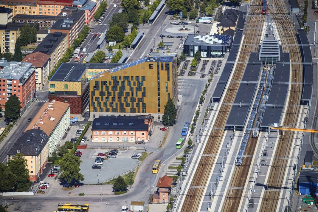Fastigheten ligger i direkt anslutning till Uppsala Centralstation med avgångar för buss och tåg precis utanför dörren.