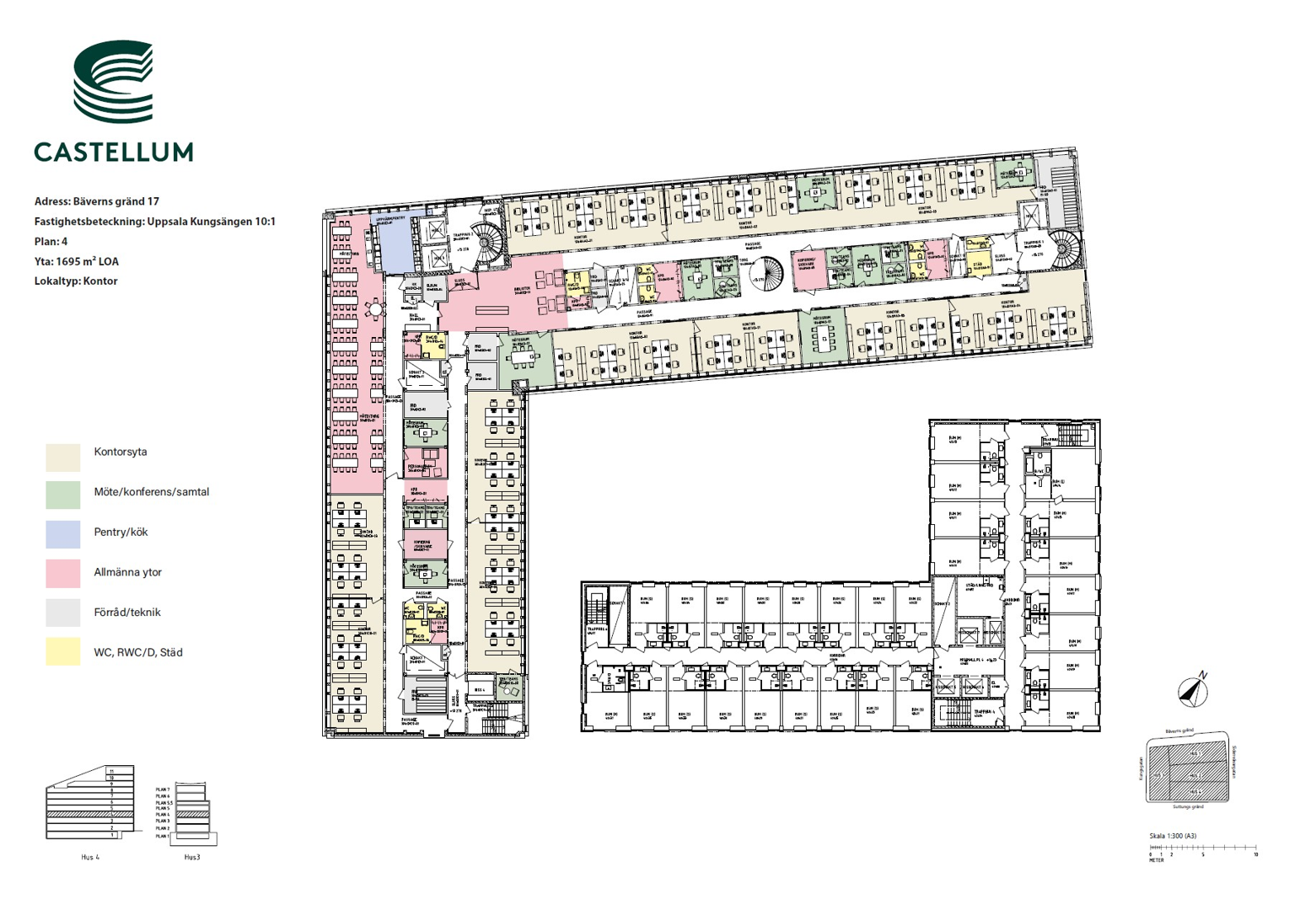 Lokalen omfattar totalt ca 3 400 kvm, fördelat på två våningsplan (plan 3 och 4), men kan med enkelhet anpassas efter era behov – till exempel delas ner till ytor från ca 700 kvm. De generösa lokalerna är i mycket gott skick, med en väldisponerad planlösning som erbjuder både öppna ytor och mötesrum i olika storlekar. Här finns alla förutsättningar att skapa en arbetsmiljö som främjar samarbete, effektivitet och trivsel.