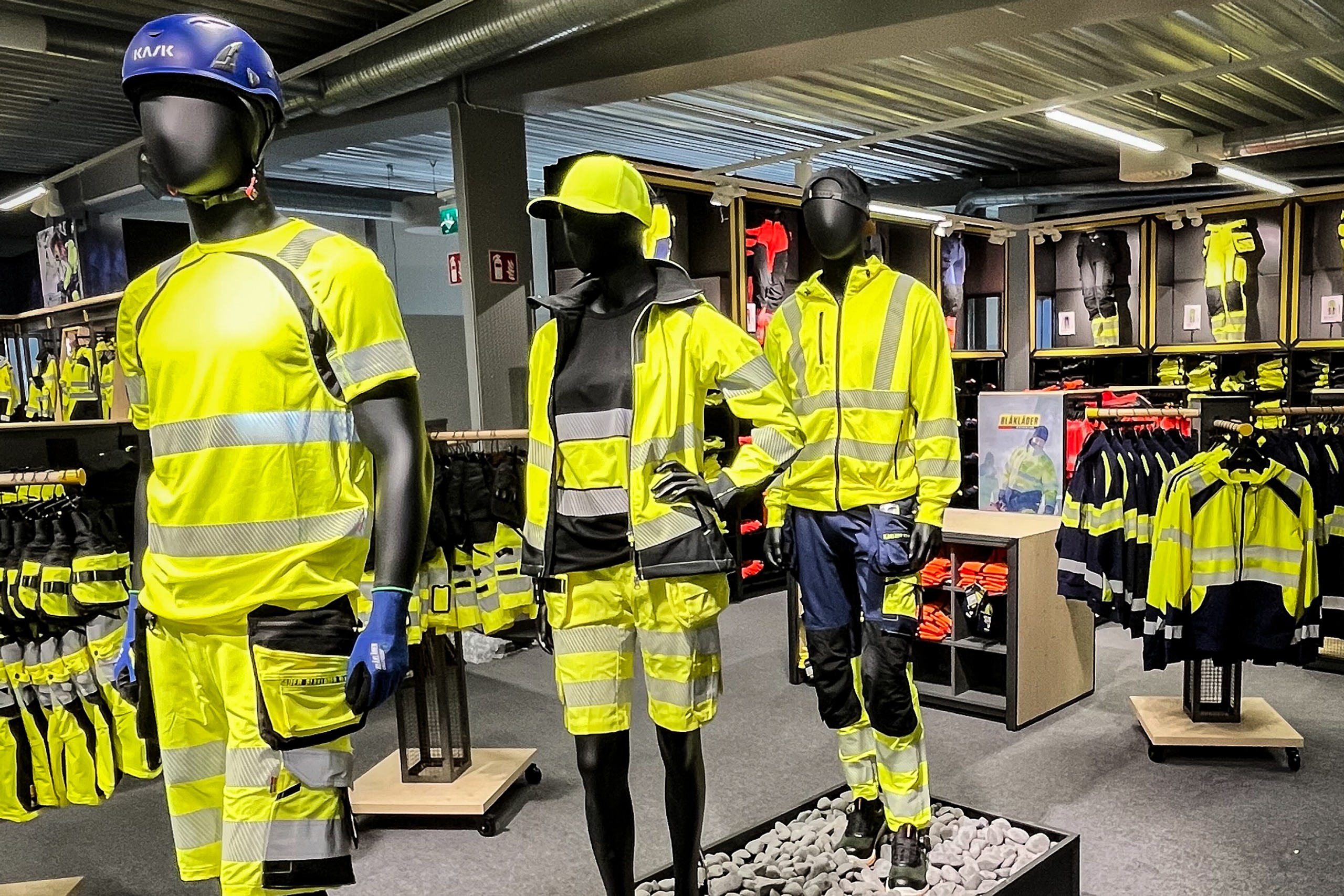 YP i Borås har ett stort sortiment arbetskläder, allt presenterat i en ljus och trivsam lokal.