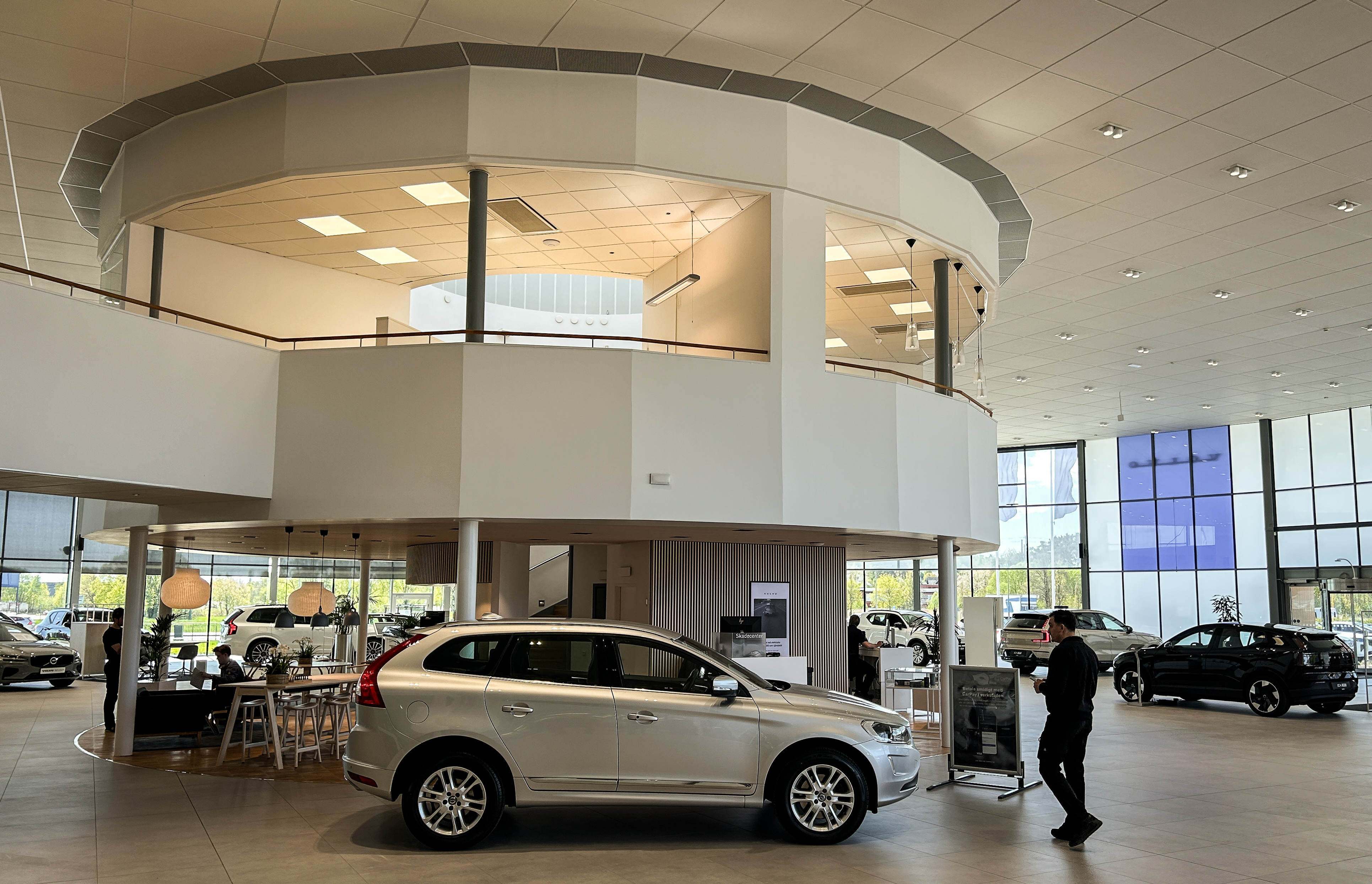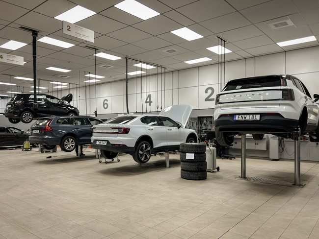 Allt följer Volvos koncept för hur märket ska upplevas i alla bilhallar, och även verkstaden är renoverad med nya klinkergolv, all verkstadsinredning, nytt ljust undertak och optimerad belysning för bästa möjliga arbetsmiljö.