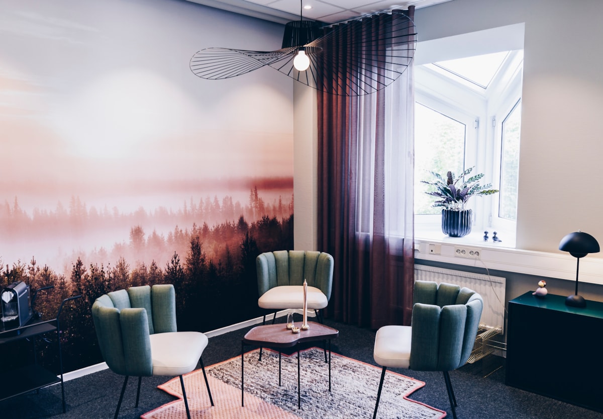 "Alla våra medarbetare har egna rum. Vår bransch kan vara väldigt tidspressad och då har arbetsmiljön stor betydelse. Man måste trivas och ha rätt förutsättningar för att kunna fokusera. Det är vår skyldighet som arbetsgivare att kunna erbjuda våra medarbetare det lugn man söker på hemmakontoret även på jobbet", säger Anna.