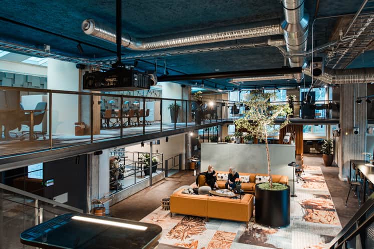 – Många reagerar med är det så här det ser ut? När man kommer in möts man av mysiga lokaler med industrikaraktär. Här finns krypin där du kan ta ett digitalt möte, loungeplatser, höj- och sänkbara skrivbord med extra skärmar samt bord där du kan samla hela teamet.