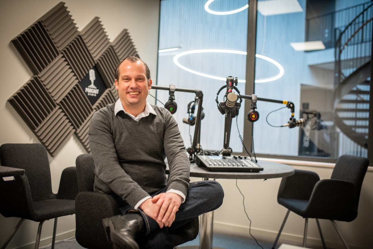 "Och här har vi vår studio där vi kan spela in podcasts", berättar Erik Ågren.