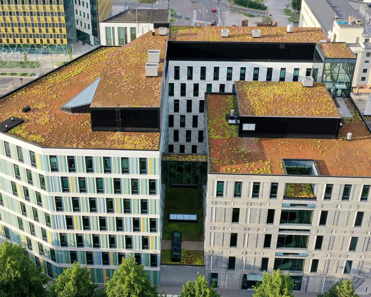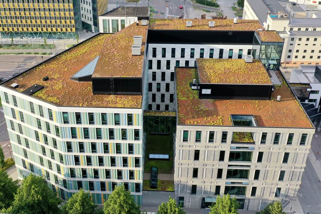 - anlägga gröna tak. Växtklädda tak är ett bra sätt att minska värmeeffekten och minskar även avrinningen. Taken hjälper också till att rena vattnet innan det når våra avloppssystem. Detta minskar risken för översvämning och ger även livsutrymme för insekter och fåglar i stadsmiljön.