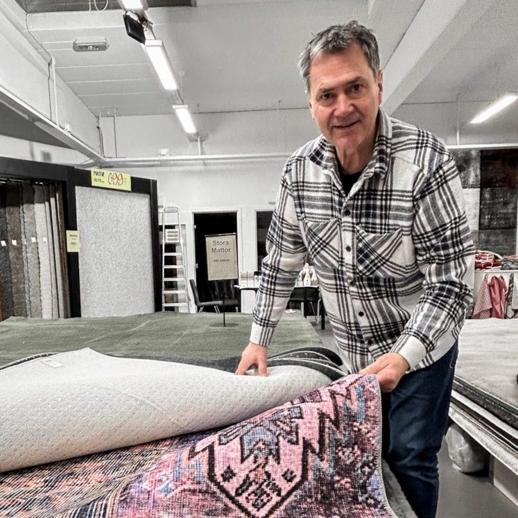 Sedan ett femtontal år har han även jobbat med utförsäljning av nya och utmärkta mattor till ofta häpnadsväckande låga priser. Mycket kommer från en kompis som är en stor grossist i branschen. Det kan röra sig om returmattor från kända e-handelsbolag, visnings- och provkollektionsmattor eller mattor i utgående modeller och färger.