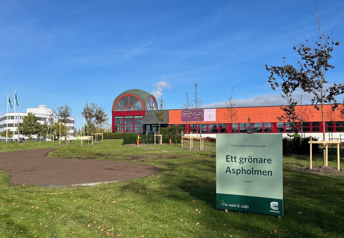 "Hållbarhet är Castellums huvudgren och här på Aspholmen finns alla möjligheter. Vi har stora fastigheter med stora tak där vi kan installera solceller. Vi kommer fortsätta satsa stort på laddstolpar och göra asfalterade refuger gröna för att kunna ta hand om dagvatten på tomten. Vi ser även över möjligheterna att bygga bikupor och anlägga ängsmarker vilket gynnar den biologiska mångfalden. Vi kommer också plantera fler träd vilket skuggar fastigheter och därmed sänker behovet av kyla på sommaren."