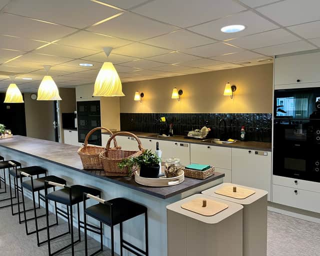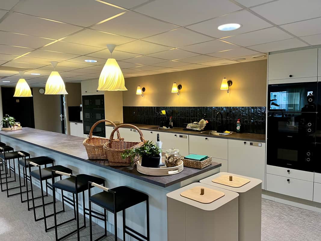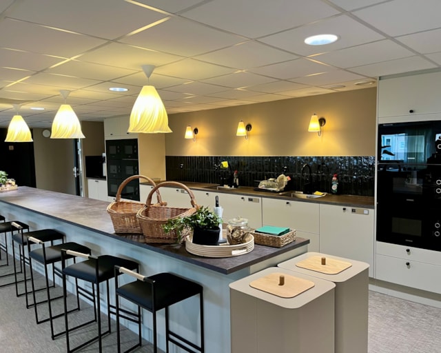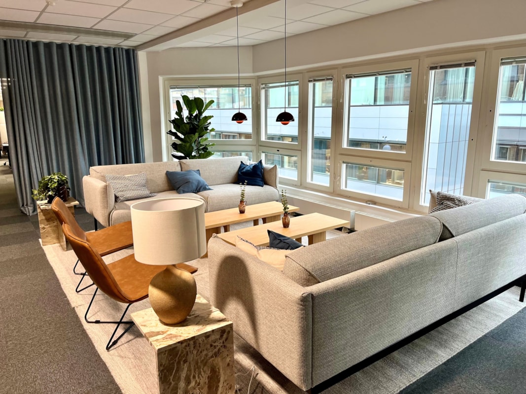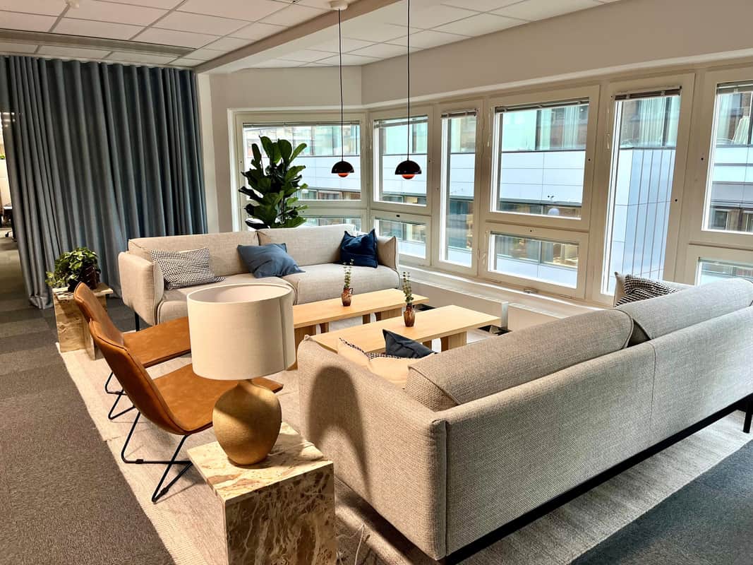 – Det här känns verkligen som hemma! Vi har börjat hitta rutiner kring hur vi sitter, hur tekniken fungerar och alla möbler är på plats. Vi ville till en ombonad och samtidigt lite lyxig känsla och det har vi definitivt lyckats med här, säger hon och fortsätter: