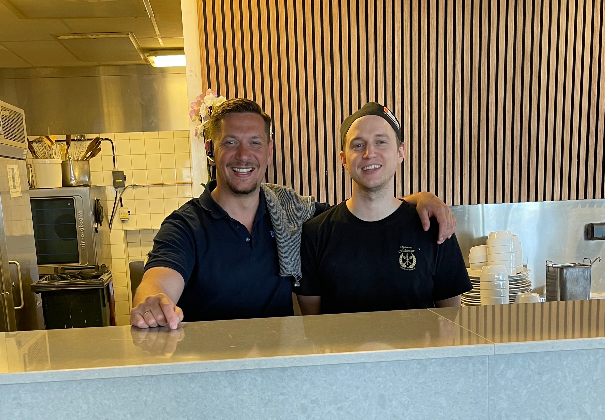 Oliver Spasenoski, delägare av restaurang Falutorget, tillsammans med kollegan Adam.