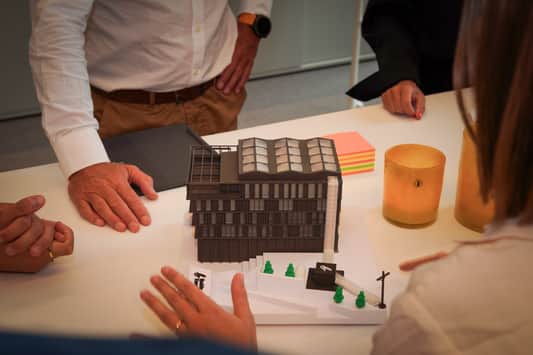 Byggnaden ska drivas med förnybar energi och producera minst 1,5 GWh solel per år. Den är dessutom redan miljöcertifierad enligt Miljöbyggnad v4.0 Guld – den högsta nivån inom certifieringen.