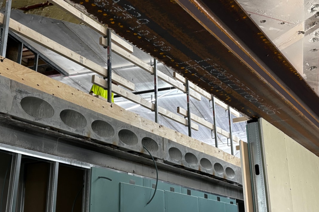 – Alla glaspartier och stor del av undertak återbrukas, liksom stora delar av innerdörrar och vissa möbler. Vi har valt material med klimat i åtanke. Alla detaljer kring inredningen är inte klara än men det finns roliga förslag från vår arkitekt. Vi har också en idé om att använda delar av hålbjälklaget som demonterats på plats till att skapa inredning, som bord och bänkar i det nya kontoret, berättar Christin Carlsson, hållbarhetsansvarig på Castellum.