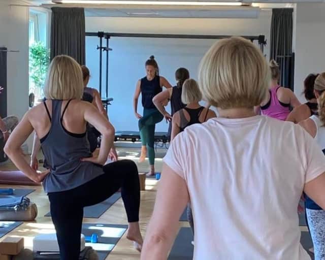– Vi alternerar mellan två olika pass. Varannan vecka kör vi HIIT N’ Strength som är ett funktionellt helkroppspass och varannan vecka kör vi yoga. Det gör vi dels för att få lite variation, men också för att alla som vill ska kunna delta, säger Annie.