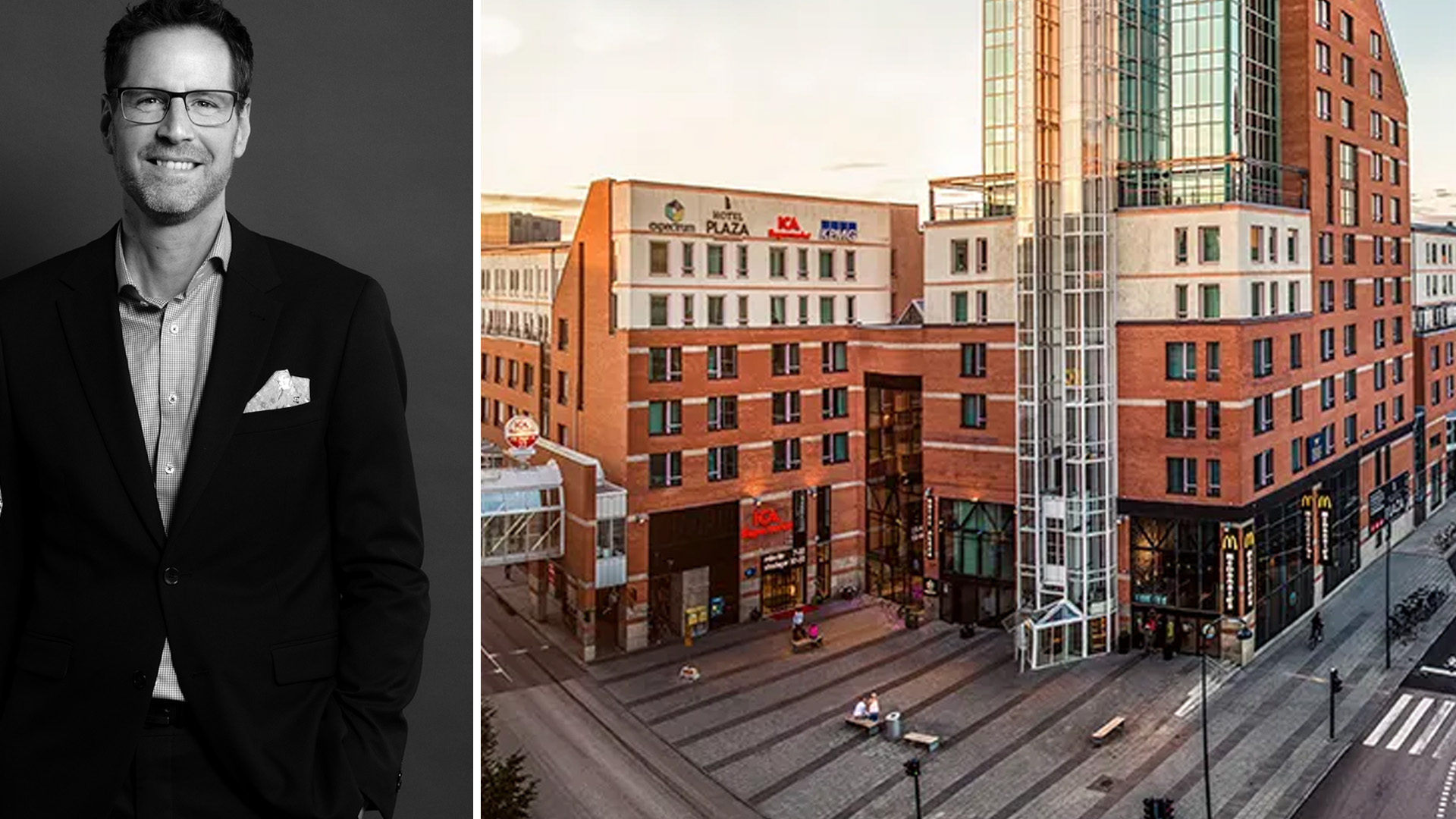 Tobias Hultberg, vd Plaza Hotell i Västerås och en vy över entrén till hotellet idag (foto: Knut Koivisto och Best Western).