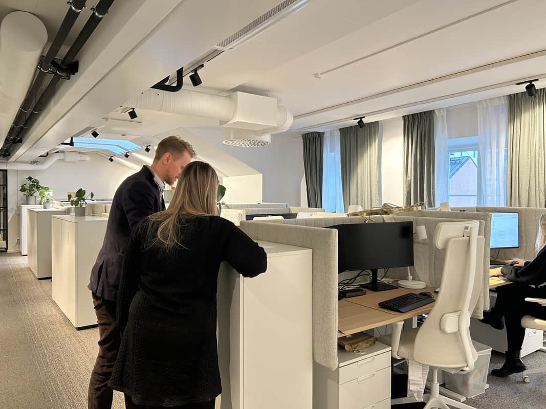 – I våra tidigare lokaler hade alla medarbetare egna rum. Det öppna landskapet vi har här skapar en helt annan synergi. Nu kan vi överhöra samtal och snabbt be varandra om hjälp, berättar Emil.