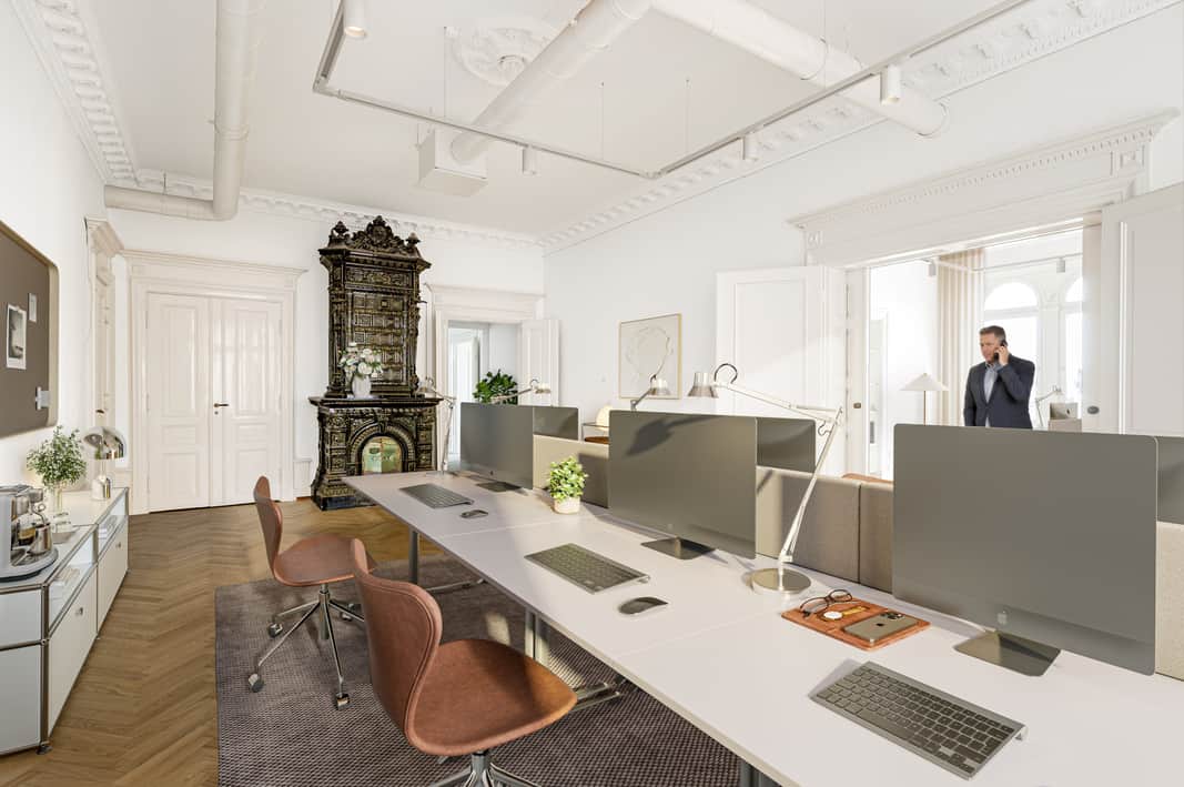 Ett hus med ambitioner - en plats där företag kan växa, inspireras och trivas. Här skapar vi förstklassiga kontor i en miljö som kombinerar elegans, karaktär och flexibilitet. Från öppna ytor för samarbete till avskilda rum för fokus.