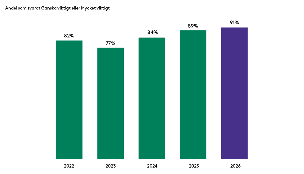 Andel som svarat Ganska viktigt eller Mycket viktigt.